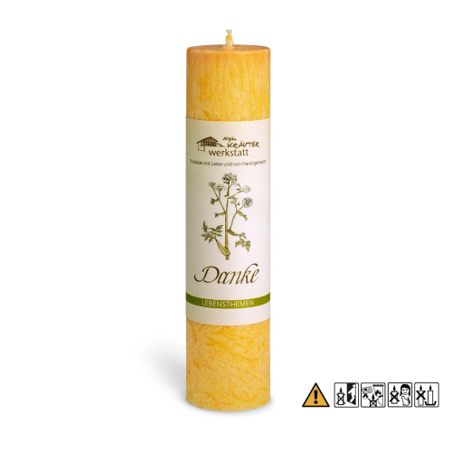 Die DANKE Heilkräuterkerze ist mit ihren Inhaltsstoffen von Gänseblümchen, Ringelblume und